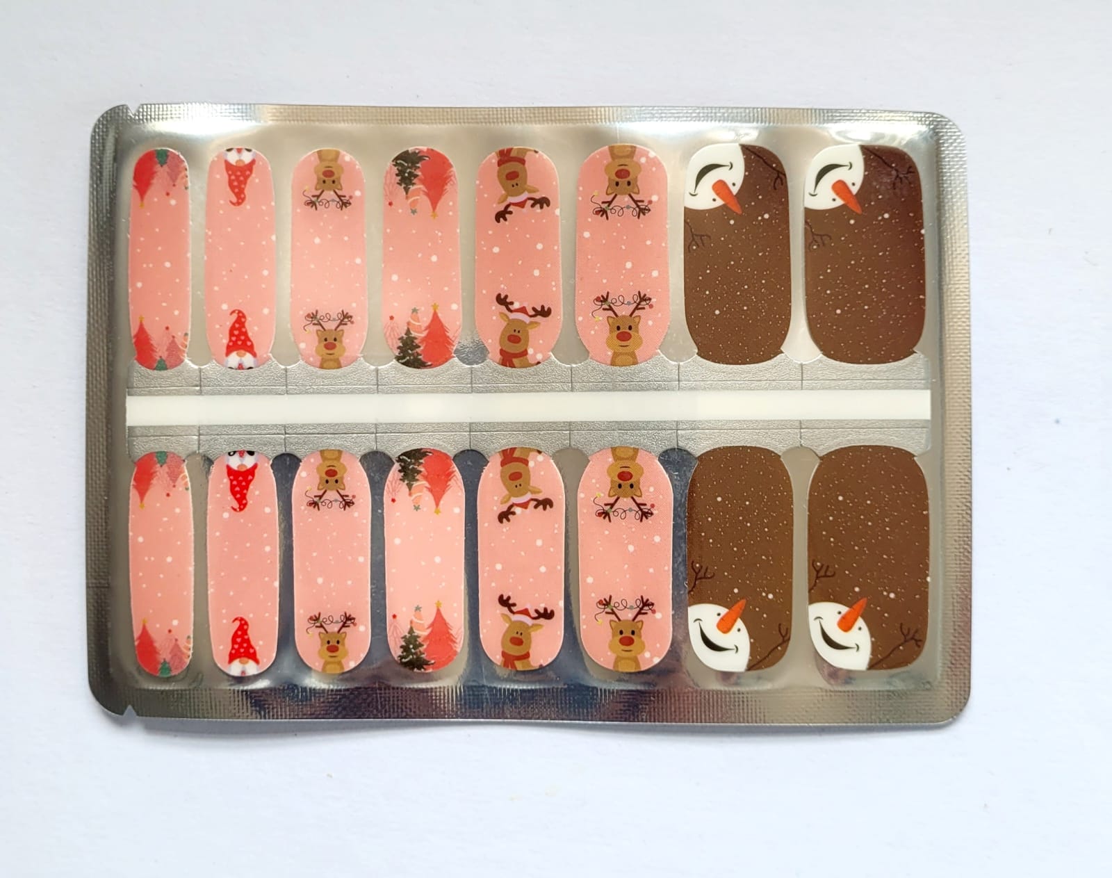 Este set de 16 esmaltes secos combina tonos rosa y marrón con diseños navideños detallados, que incluyen gnomos, renos y muñecos de nieve. Perfecto para lograr una manicura festiva y elegante, ofrece versatilidad para complementar tu look durante la temporada. Su acabado seco facilita un esmaltado rápido y duradero, garantizando que tus uñas luzcan impecables en cada ocasión especial.
