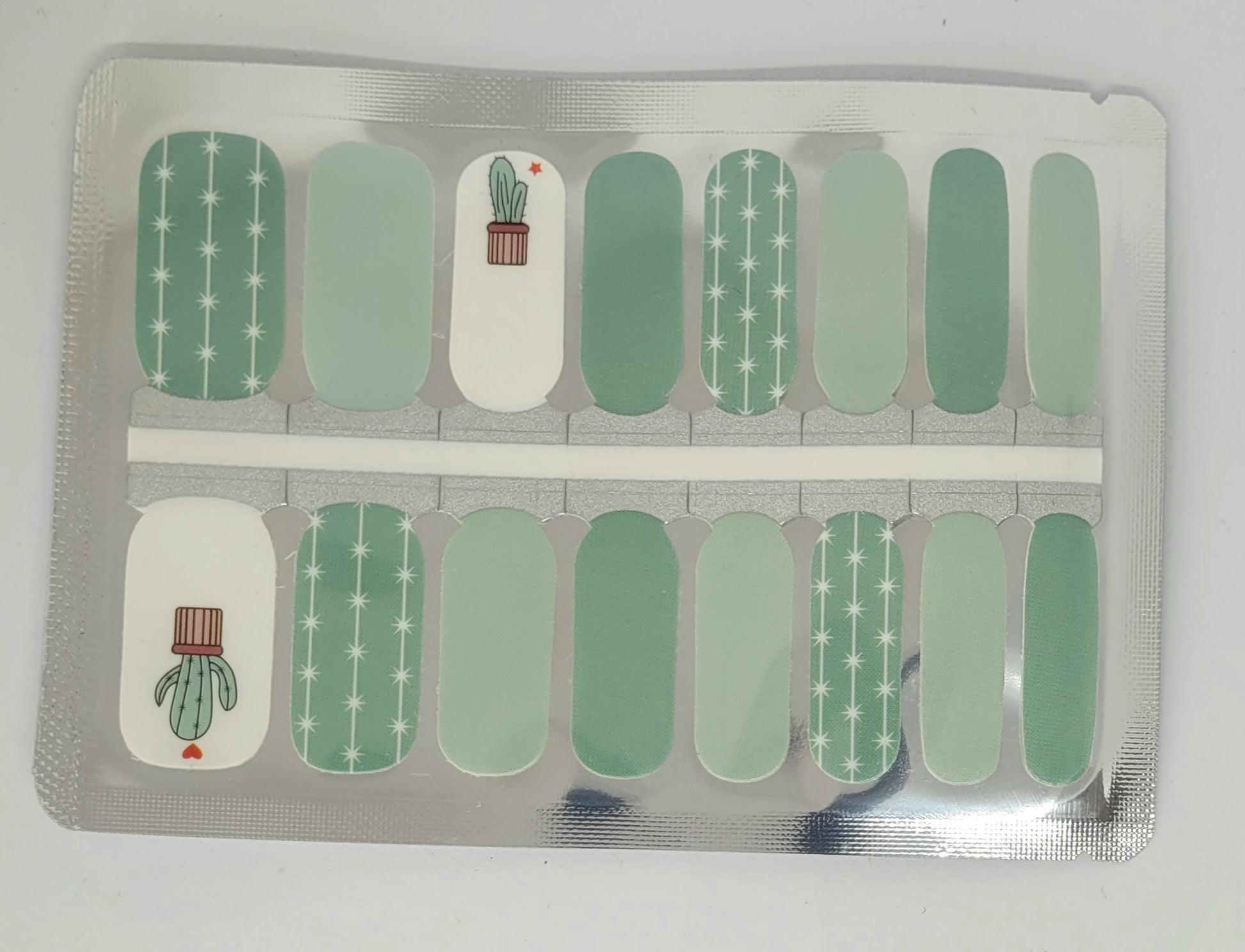Este esmalte seco de 16 piezas en colores verde menta y blanco con diseños de cactus ofrece una manicura fresca y juvenil. Rápida y fácil aplicación para un resultado profesional en casa. ¡Agrega estilo a tus uñas con cada aplicación!
