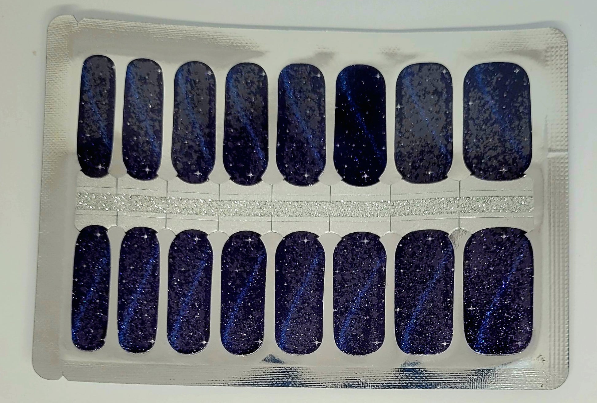 Con Estrellas 6 tendrás un look sofisticado y hermoso. Este esmalte seco cuenta con 16 piezas para que escojas el ancho que mejor se ajuste a tu manicura. Su color azul oscuro con brillos y detalles de estrellas iluminará tu manicura, dándole un toque único y elegante. ¡Descubre el poder de las estrellas en tu manicura!